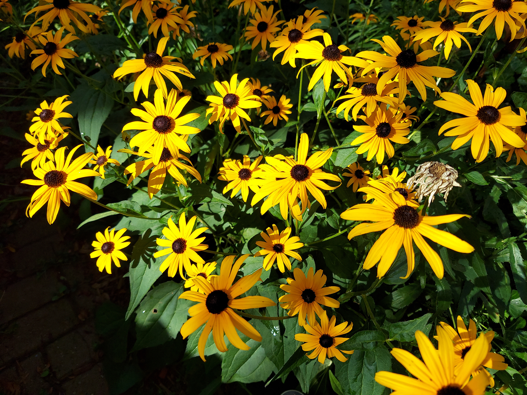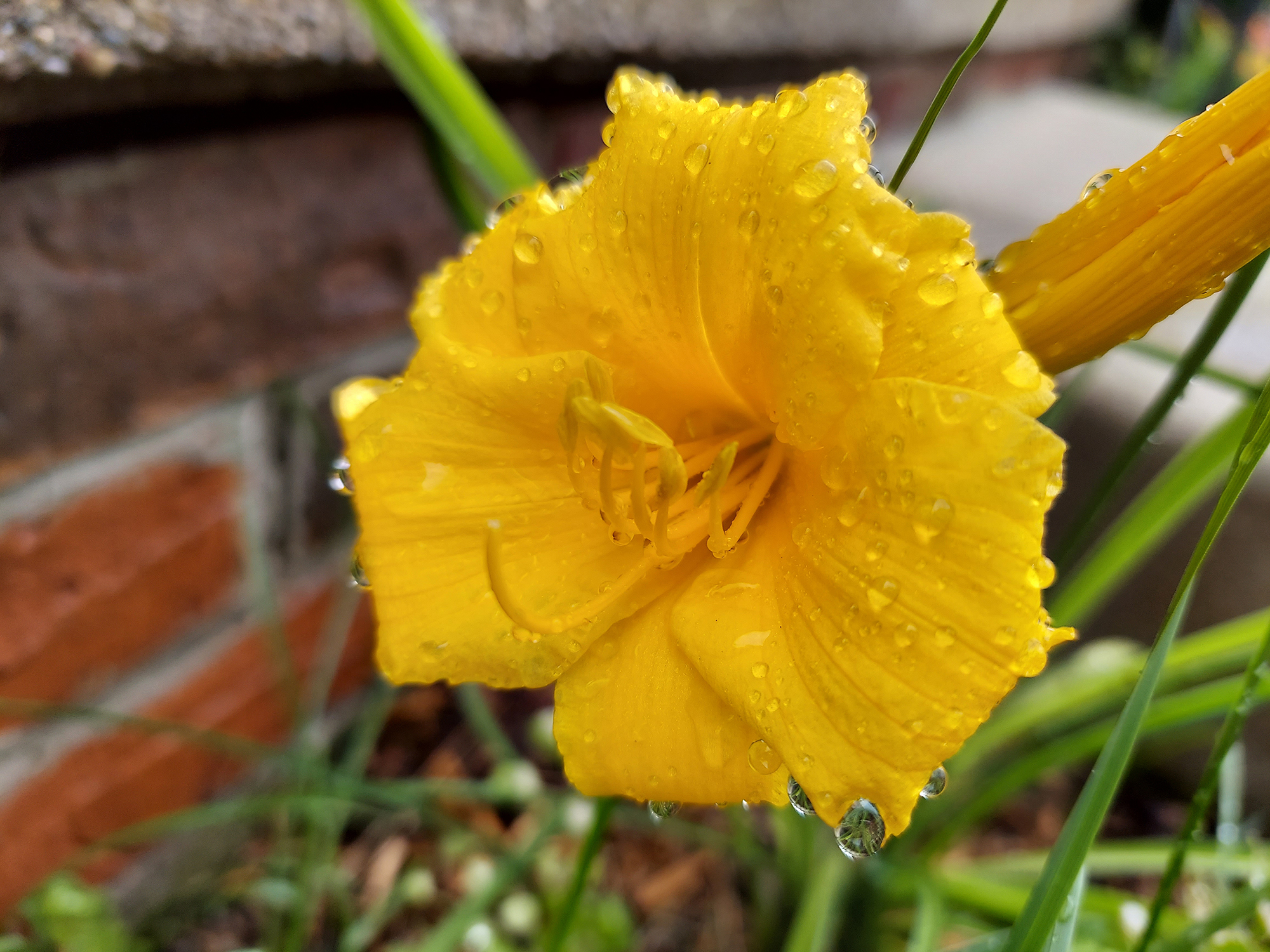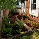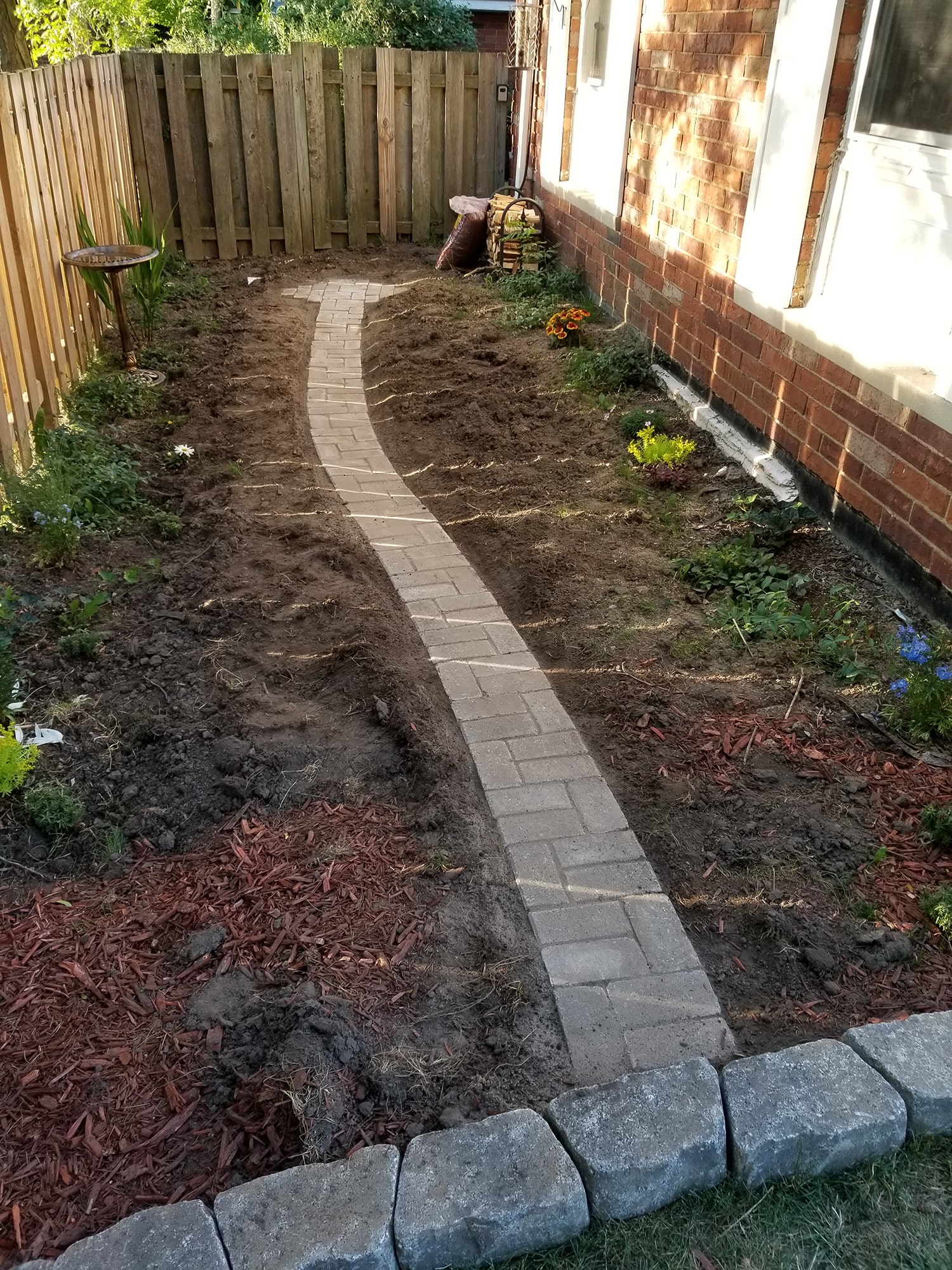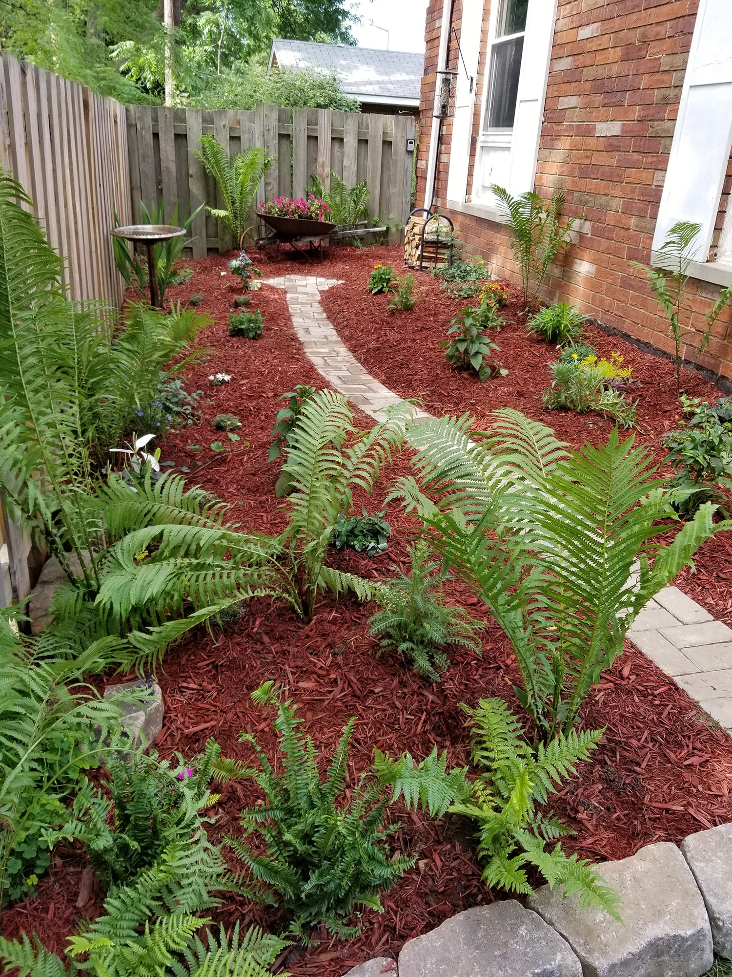 This was the year I annexed the strip of grass between my building and the wooden fence (put up by the Library next door.) I got tired of the lawn crews turning it into a muddy patch of ugly. I extended my stone wall over to the fence, and built a little brick path back along the space. I didn't get much planted this first year, but it looked infinitely better than it had.