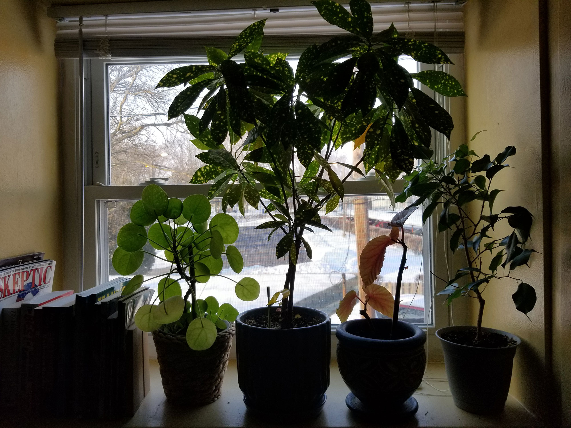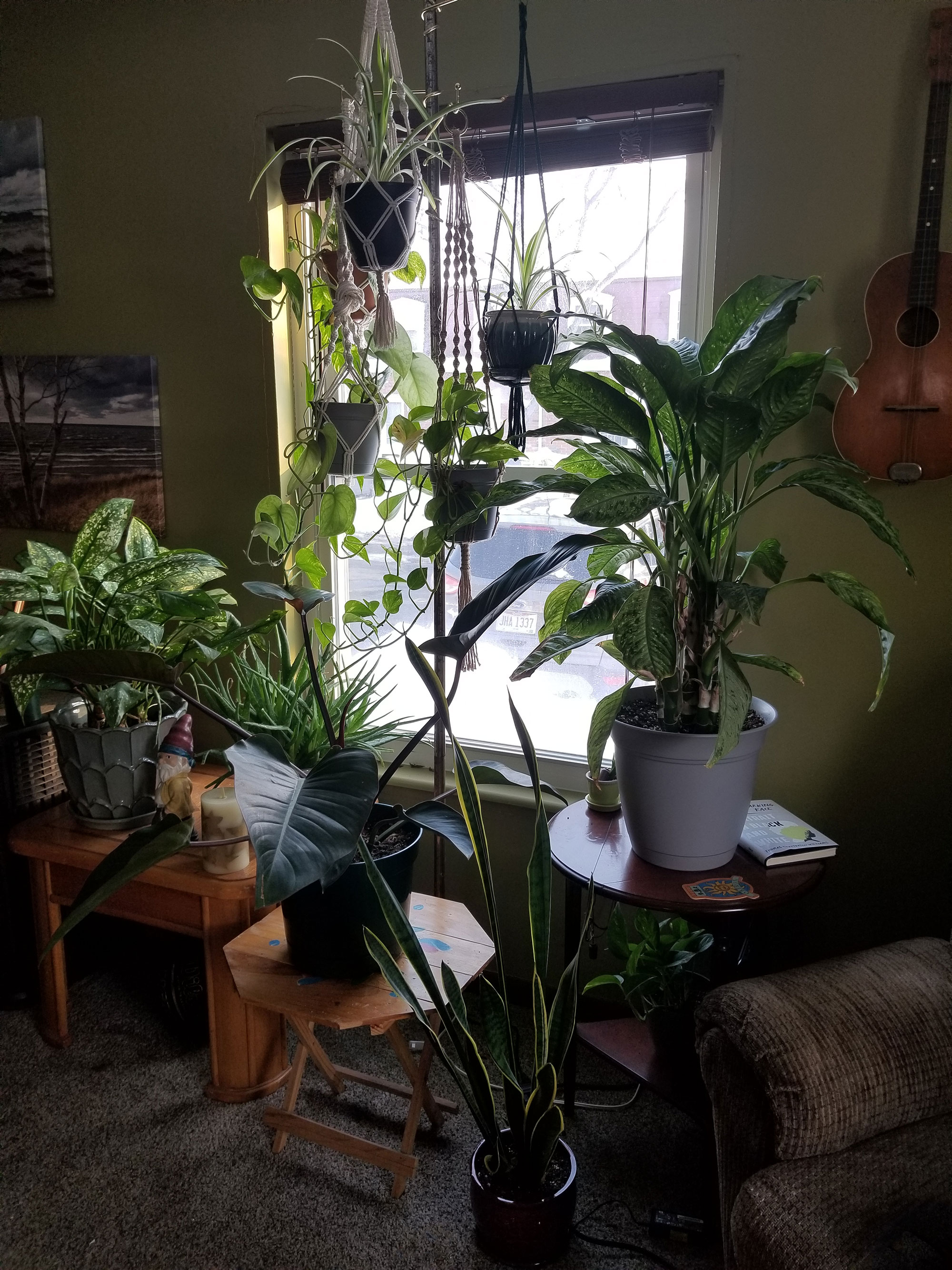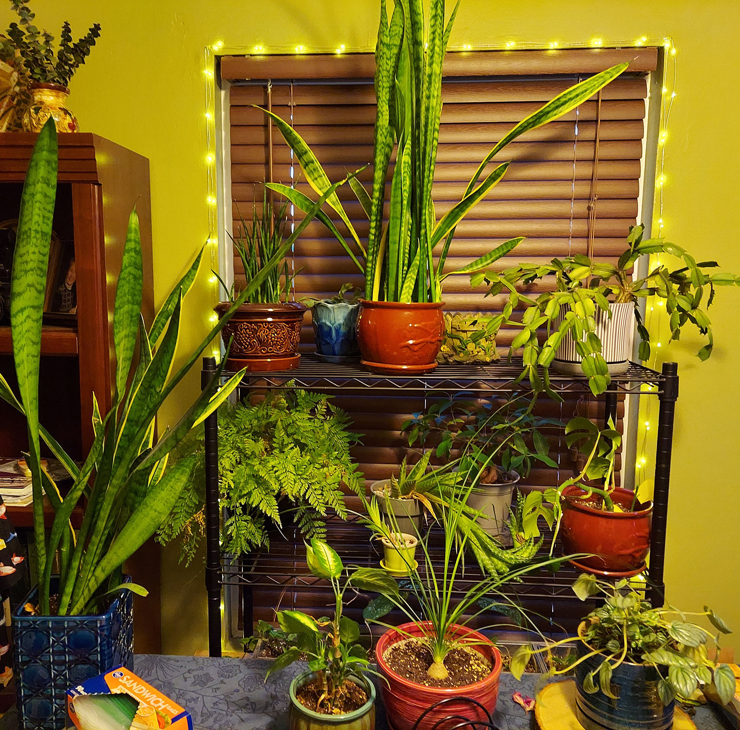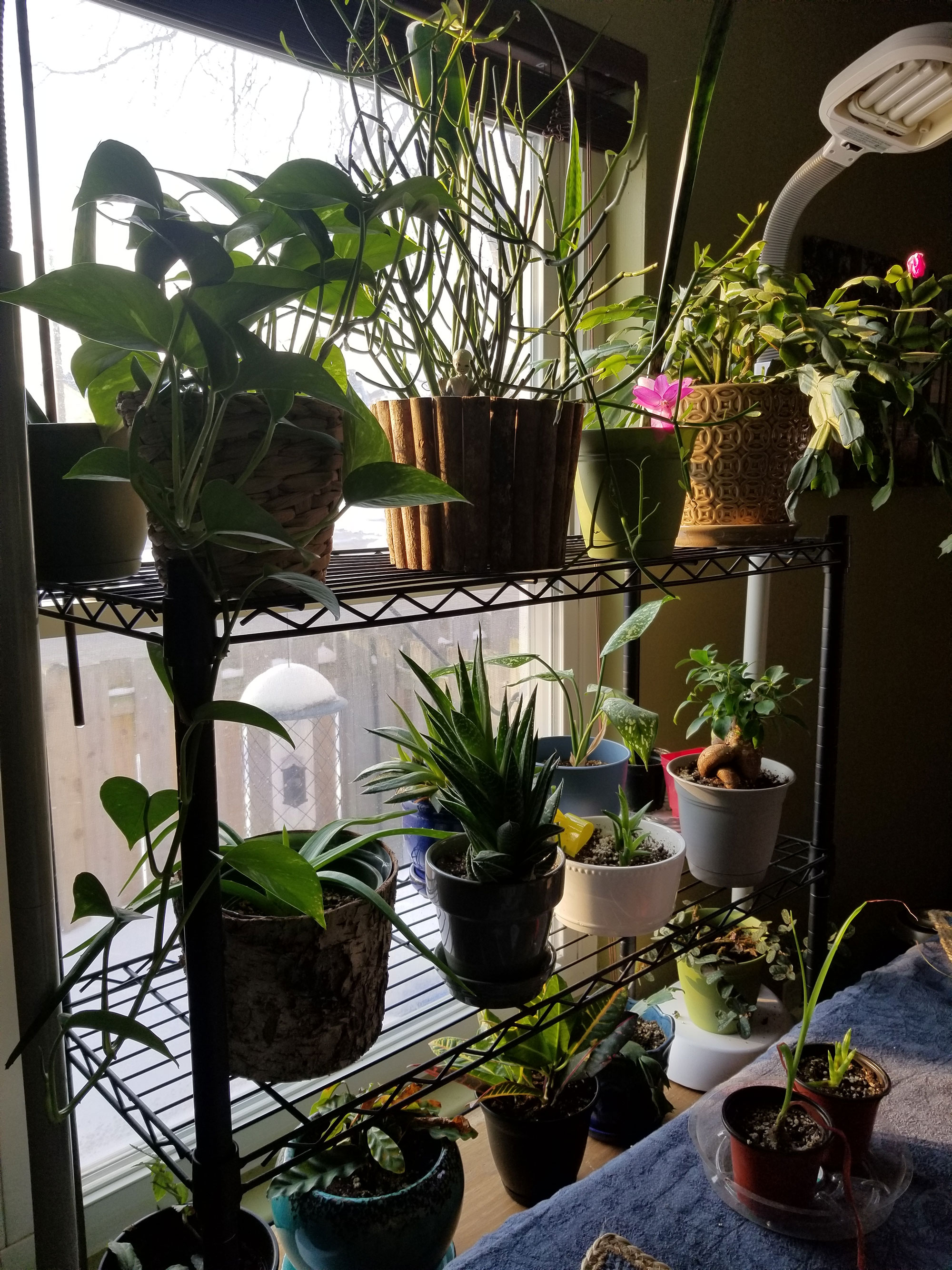 My first step into my addiction was house plants. For a long time I had maybe 5 or 10 plants total. I tended to move a lot, so they would frequently not survive the moving around and changing light conditions. But a few did, and grew, and I found it satisfying. Two in particular... the first was a Christmas cactus, grown from a single leaf given to me on a date. It's now a fairly large plant, and has survived at least five home changes (I've lost count.) The second is a snake plant (mother in law's tounge) that was at my dad's funeral. There were a lot of house plants there and several of us got some of them. This one survived for many years seemingly unchanged, then when I moved to where I currently live it apparently decided it was time to explode with growth. It got really tall, and I ended up breaking off several clumps to where I now have four new plants the size of the original one. I never really used to care for how they looked, but it's grown on me. (No pun intended.)