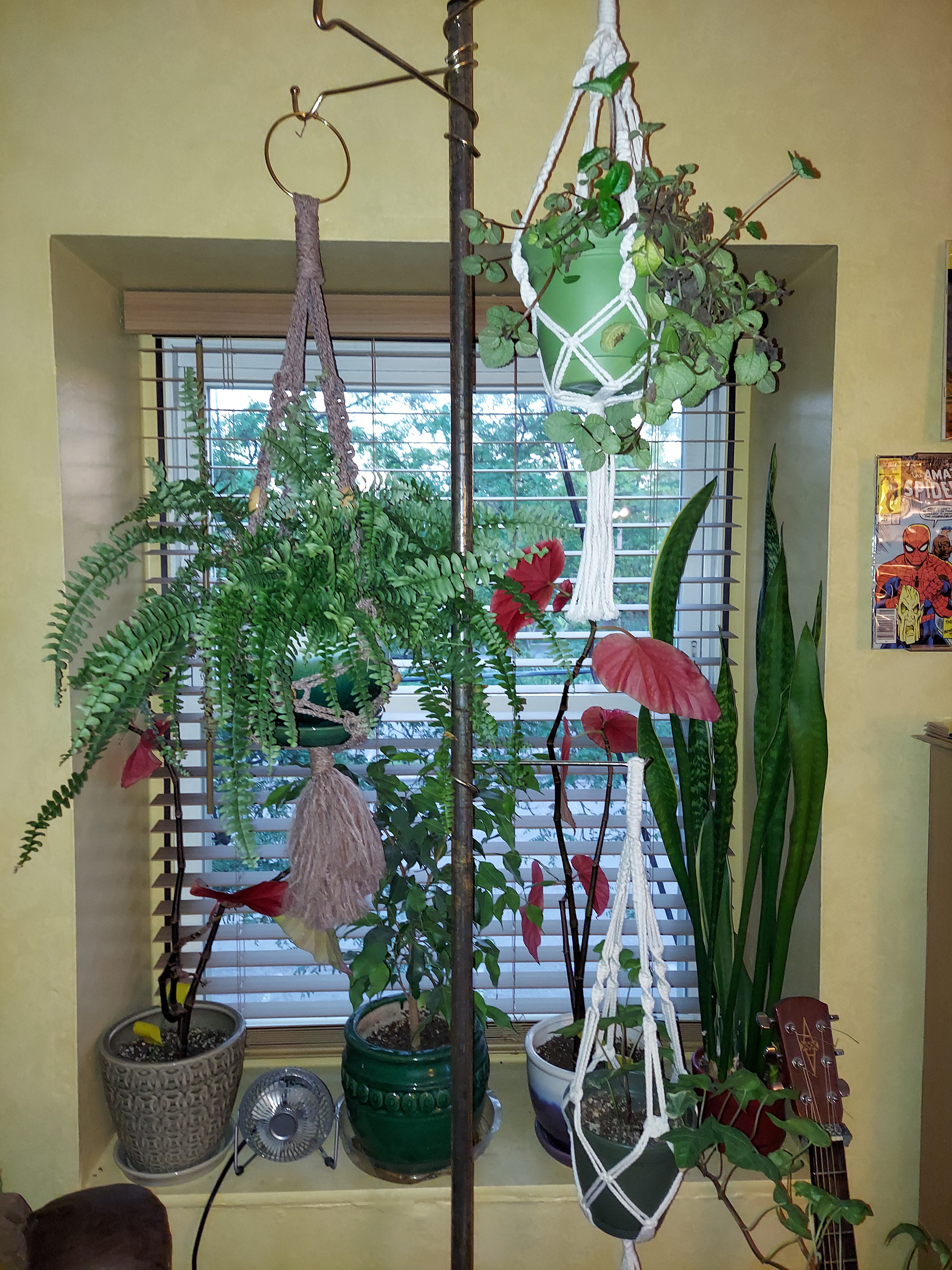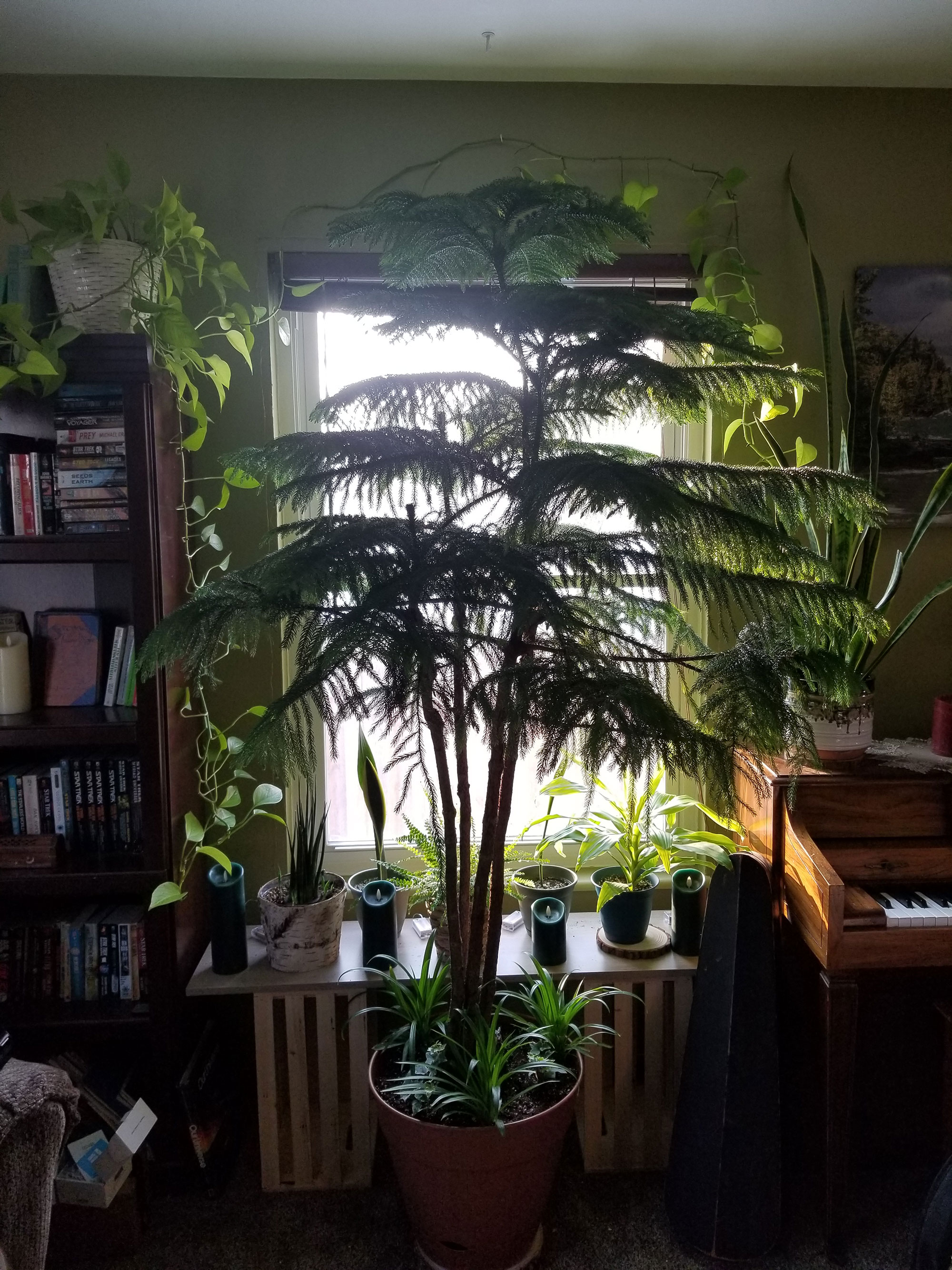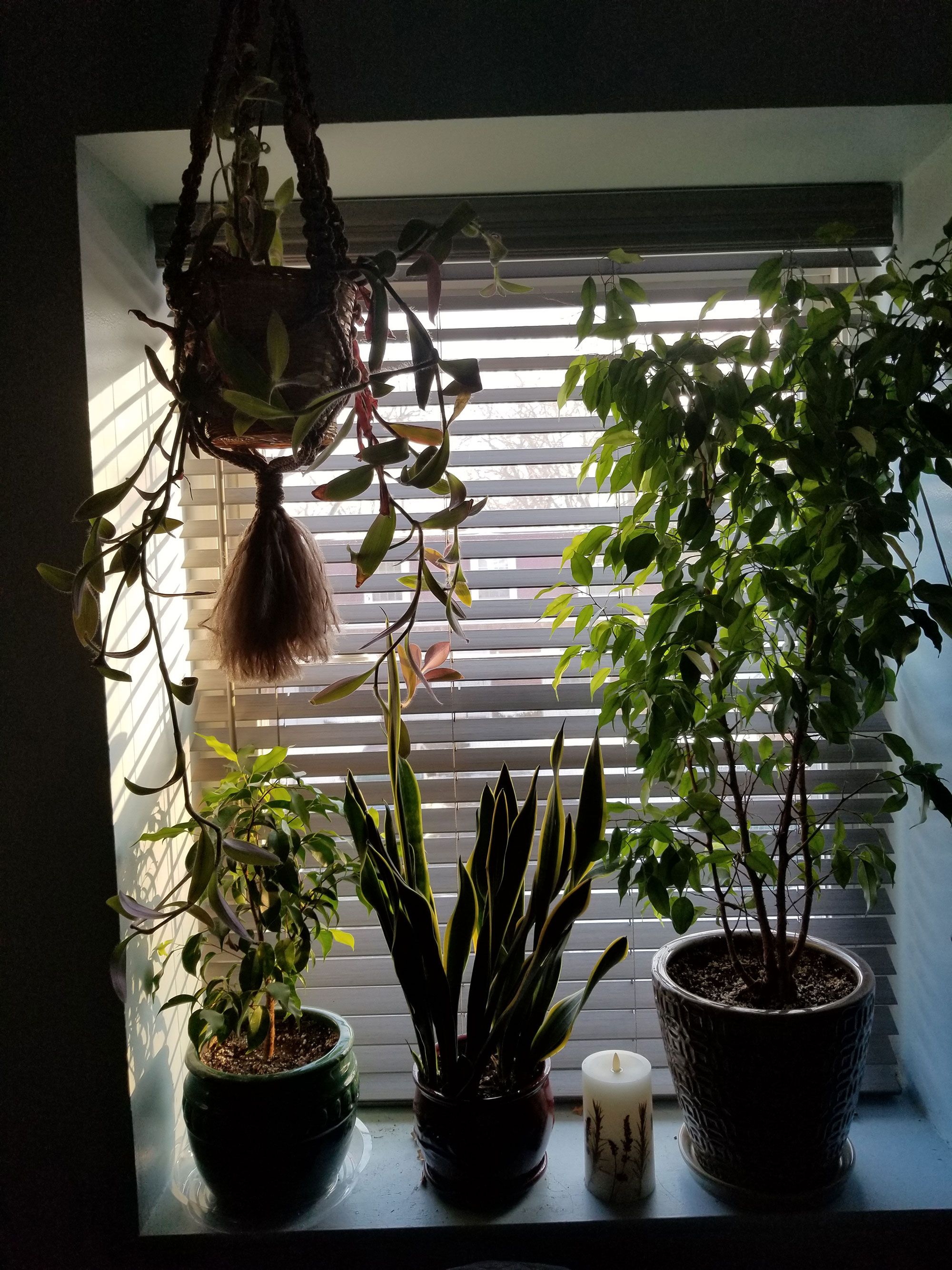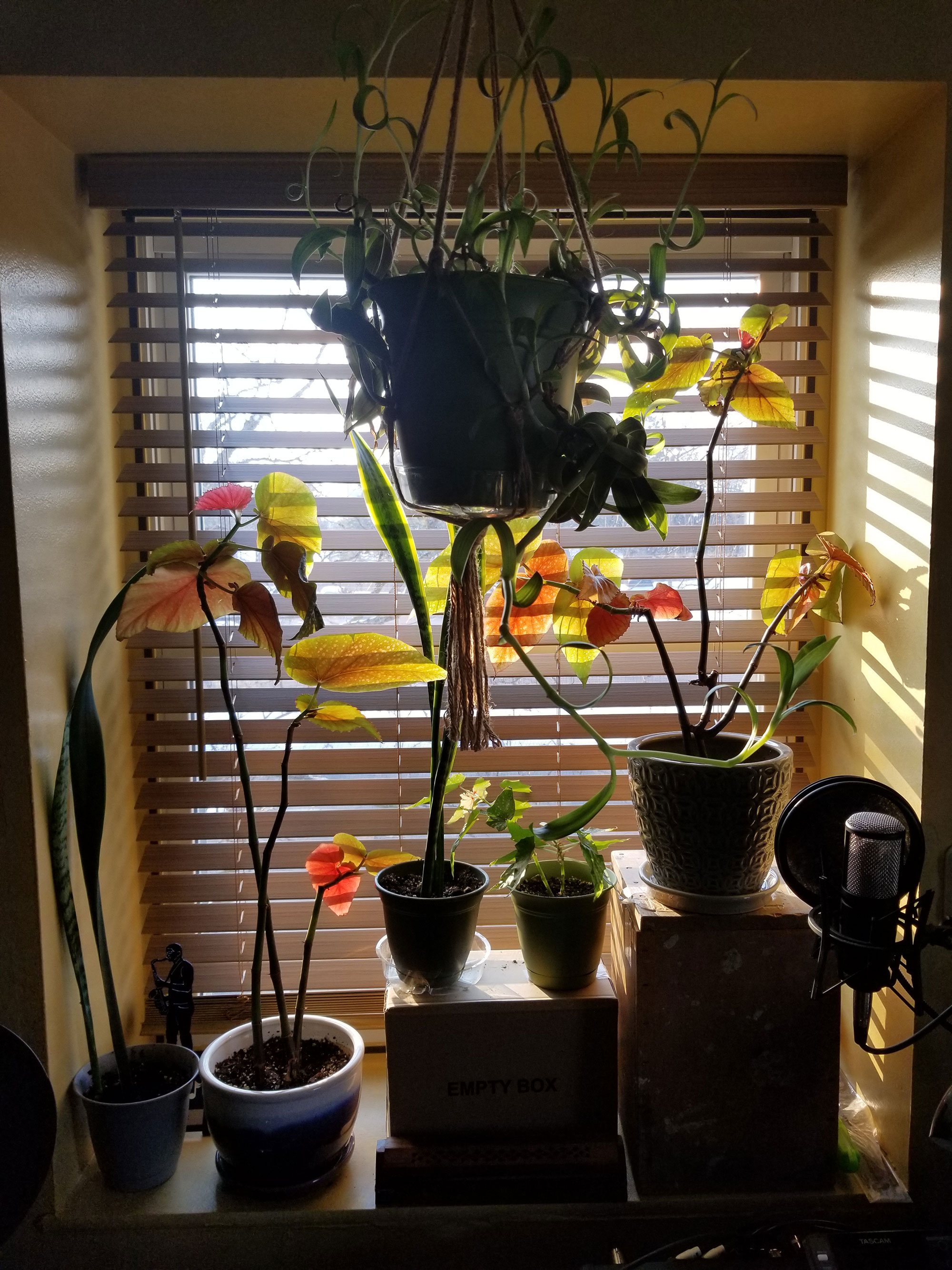 My first step into my addiction was house plants. For a long time I had maybe 5 or 10 plants total. I tended to move a lot, so they would frequently not survive the moving around and changing light conditions. But a few did, and grew, and I found it satisfying. Two in particular... the first was a Christmas cactus, grown from a single leaf given to me on a date. It's now a fairly large plant, and has survived at least five home changes (I've lost count.) The second is a snake plant (mother in law's tounge) that was at my dad's funeral. There were a lot of house plants there and several of us got some of them. This one survived for many years seemingly unchanged, then when I moved to where I currently live it apparently decided it was time to explode with growth. It got really tall, and I ended up breaking off several clumps to where I now have four new plants the size of the original one. I never really used to care for how they looked, but it's grown on me. (No pun intended.)