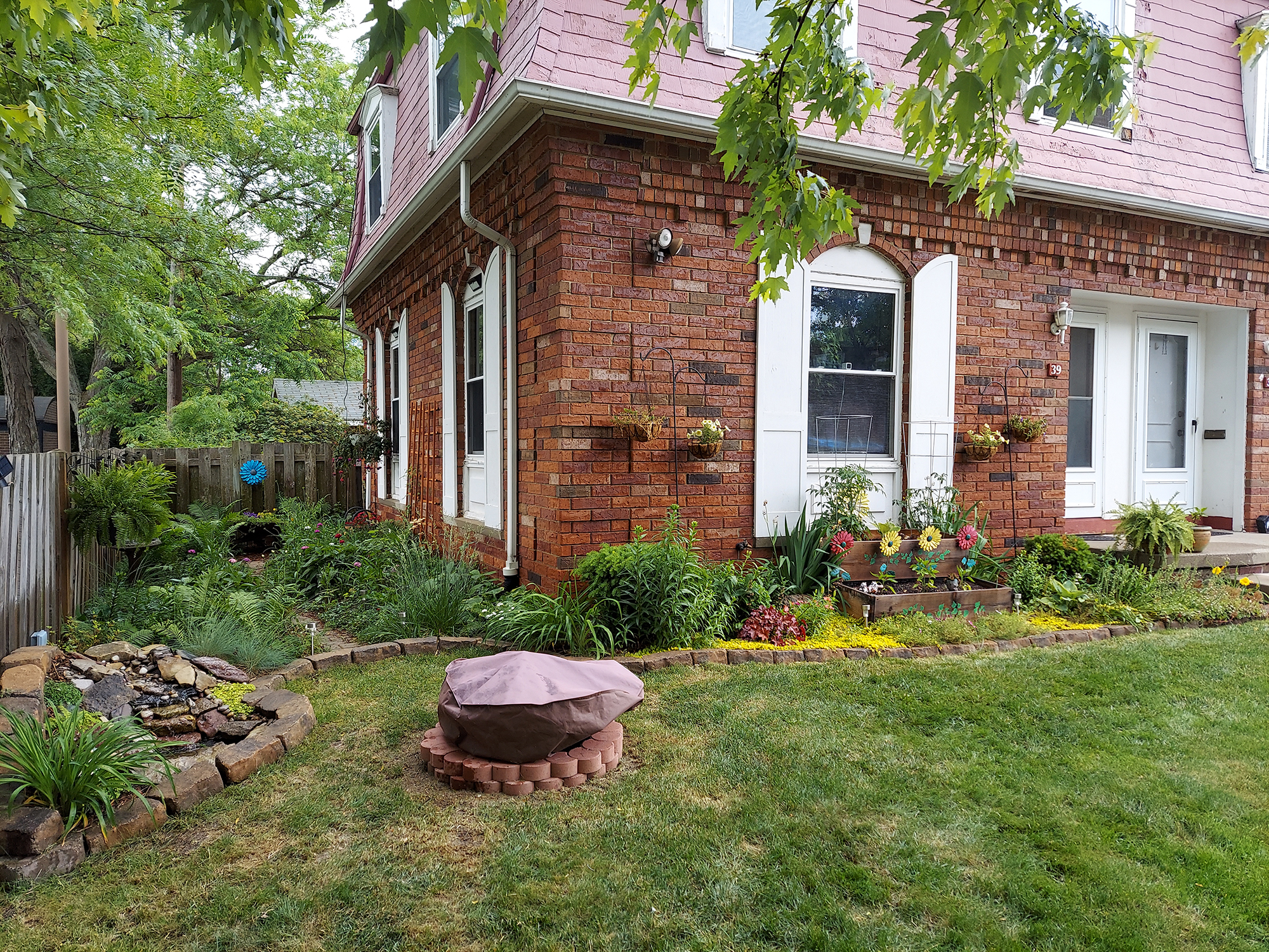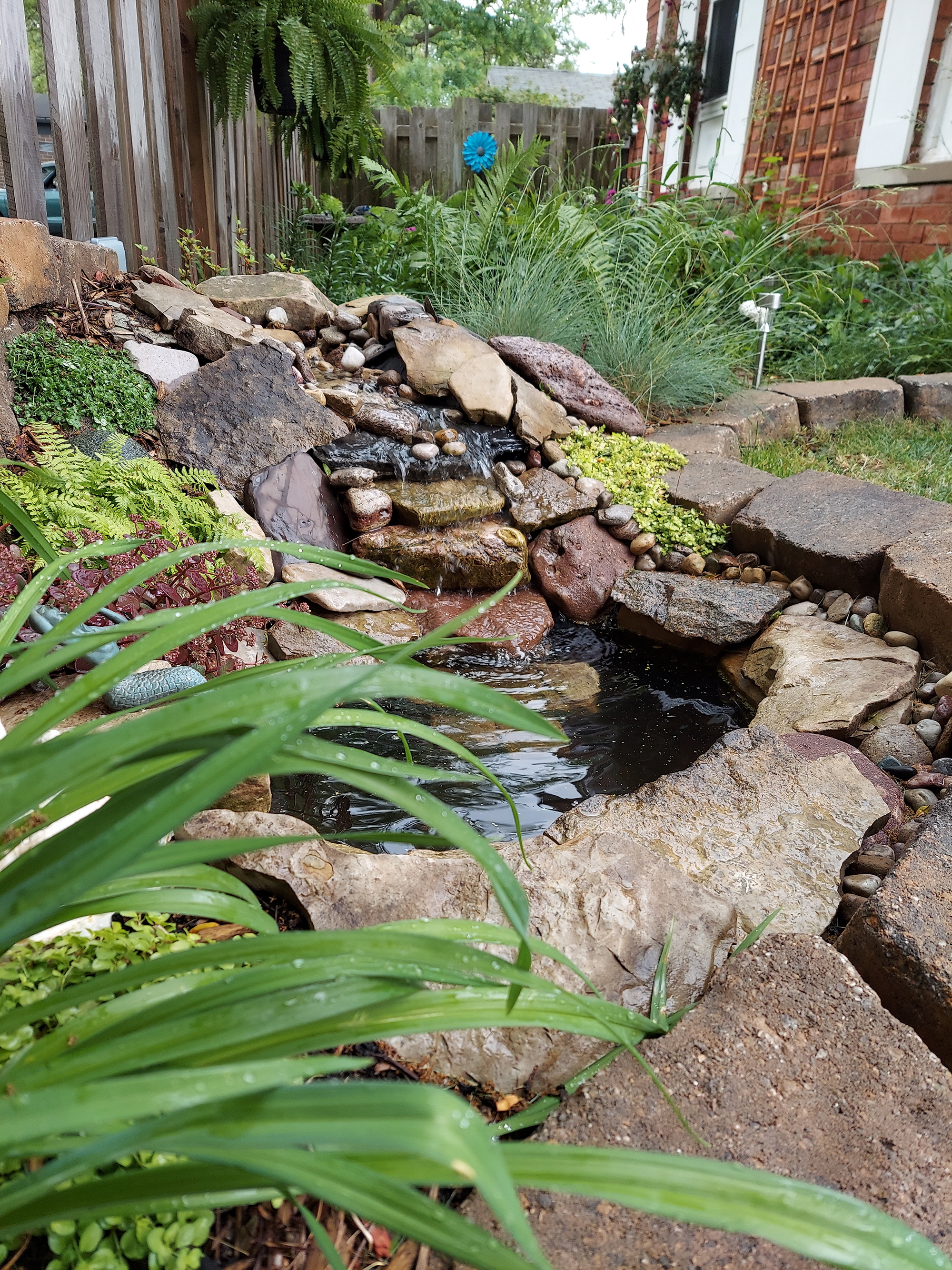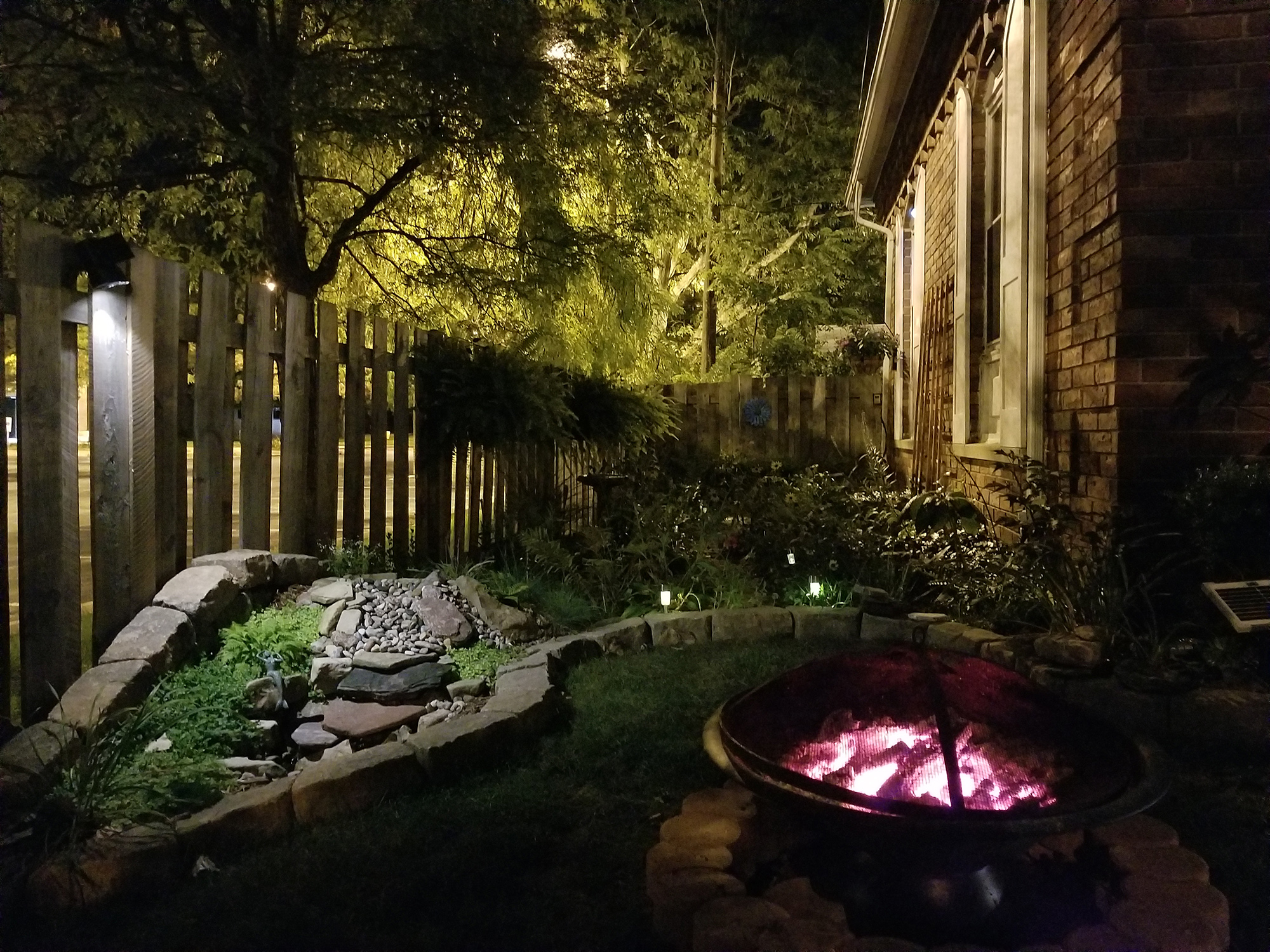 This year got off to a crazy start... some flowers were blooming early in May, though some were still going strong in November for crying out loud. I need to keep up more with the side area now, the ground cover stuff is really taking over. But with the waterfall almost perfect, and so much green, this place just feels so much more like a home. There's a few videos below, you can see the fish and some grateful wildlife, as well as my evening view which was the main goal from the start - waterfall and fire to relax next to with a beer.