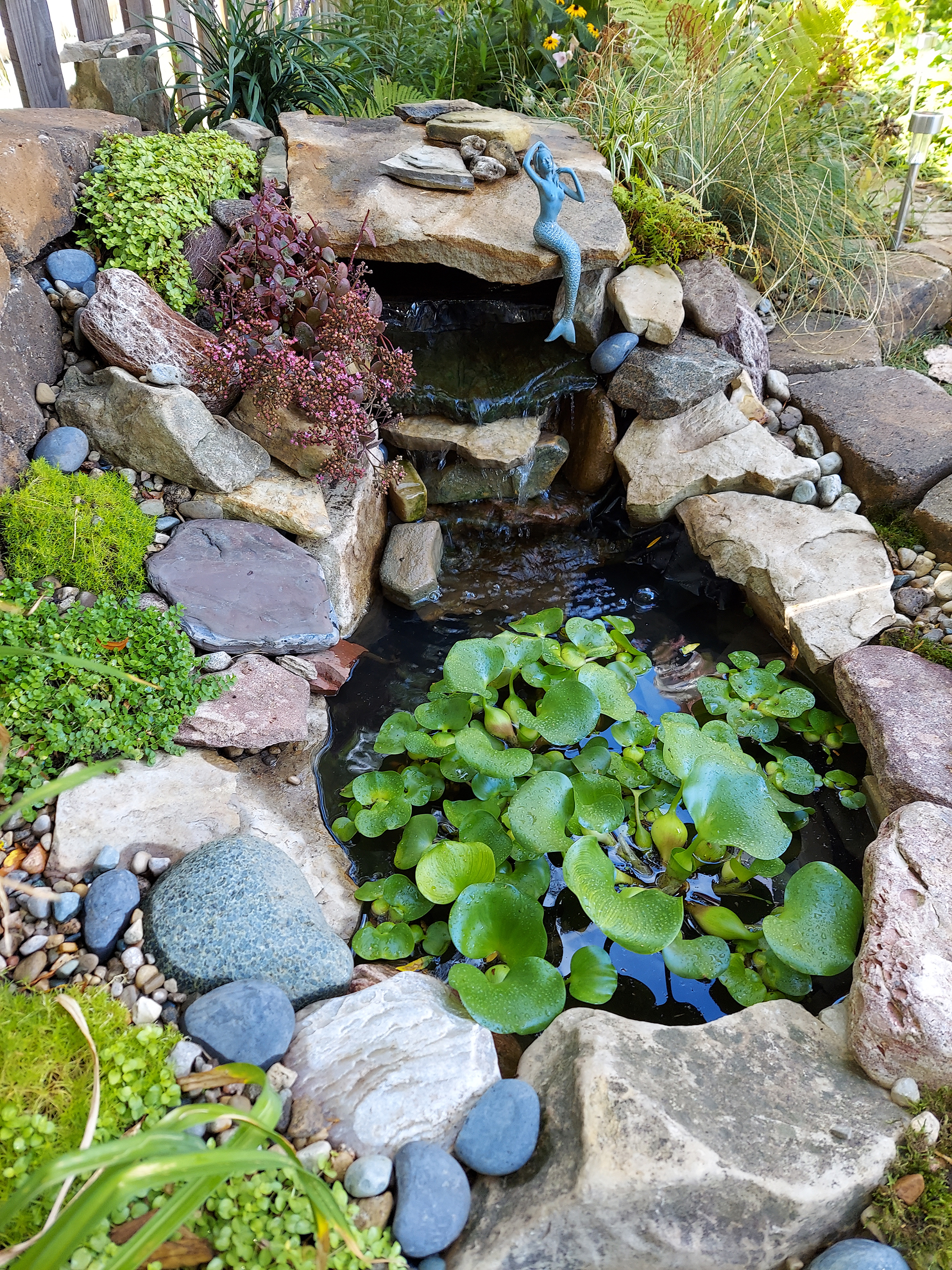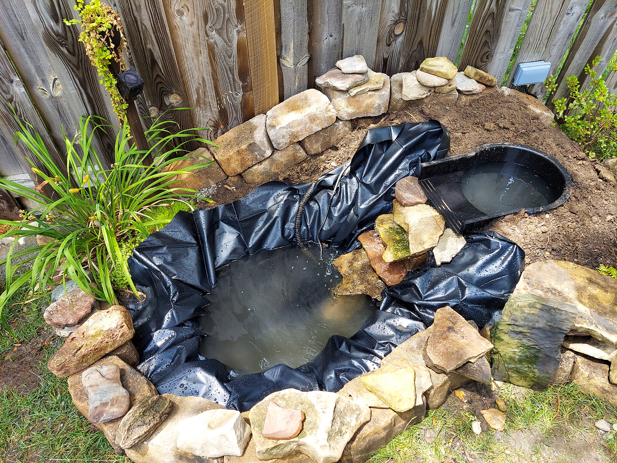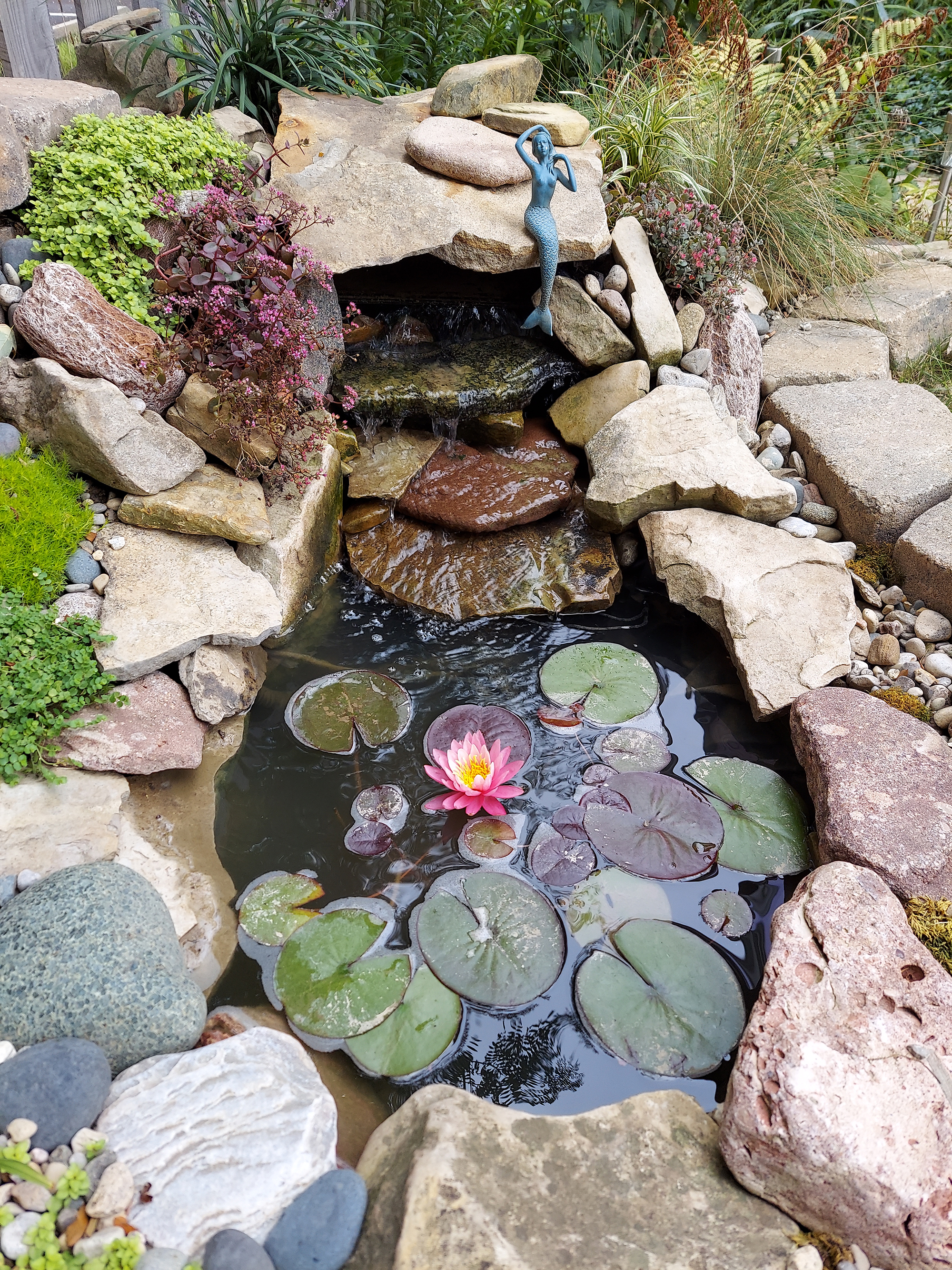 This year got off to a crazy start... some flowers were blooming early in May, though some were still going strong in November for crying out loud. I need to keep up more with the side area now, the ground cover stuff is really taking over. But with the waterfall almost perfect, and so much green, this place just feels so much more like a home. There's a few videos below, you can see the fish and some grateful wildlife, as well as my evening view which was the main goal from the start - waterfall and fire to relax next to with a beer.